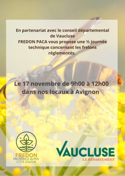 En partenariat avec le conseil départemental de Vaucluse, FREDON PACA vous propose une ½ journée technique concernant les frelons réglementés.